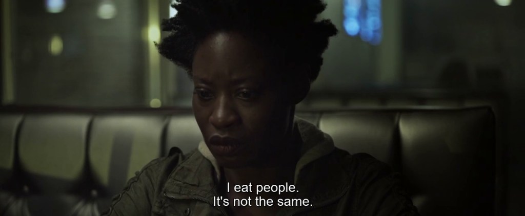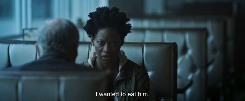 Lacey (Adeliyi) is an immortal cannibal like Jack. But Jack identifies as a human, Cain (from the Book of Genesis), cursed to walk the earth for killing his brother (a plot line used in the TV show Lucifer as well) and having a messy divorce and, to his surprise, a daughter. But Lacey’s provenance is not so clear, even at the end, when she tells us – no, actually, no spoilers. Watch it – it’s worth it.
