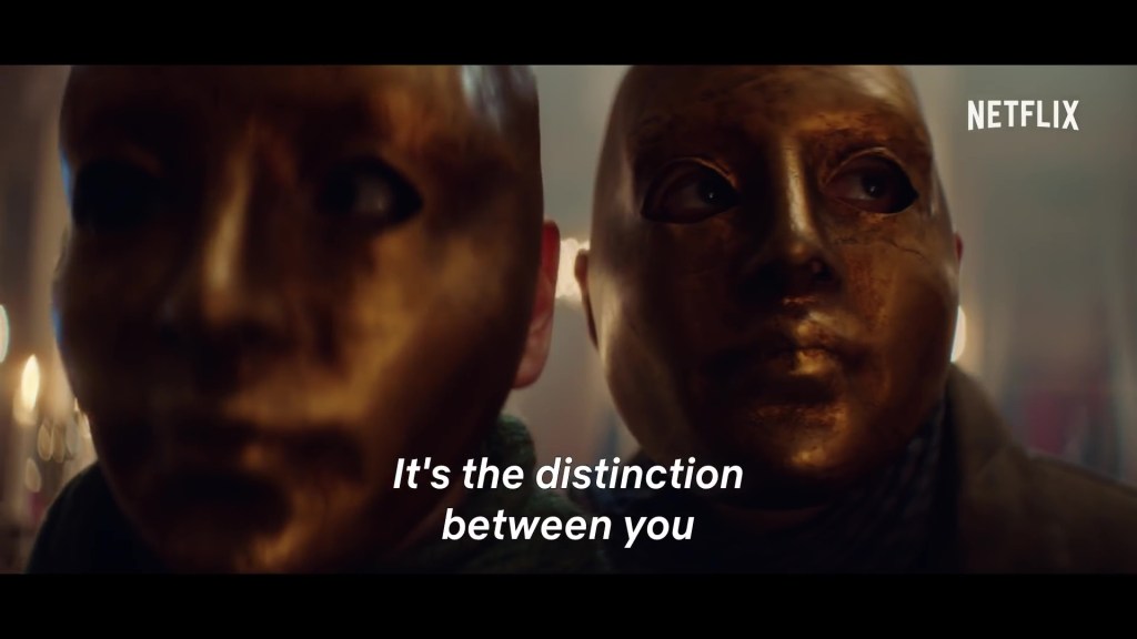 The title “CADAVER” (“Kadaver” in Norwegian) is an interesting choice. According to Dictionary.com, it means “a dead body, especially a human body to be dissected”. It is therefore a scientific term, implying research or study. Mathias and his merry men are chopping up the guests for dinner, but there is a way out for a talented person like Leonora – like Theseus and the Minotaur, she can navigate the maze of corridors and trapdoors and confront the beast, or even choose to join him. Survival depends on her choices and decisions. Almost certain starvation outside or murder and cannibalism inside. You can watch on Netflix to see which way she goes.