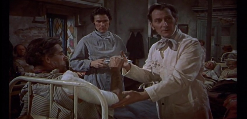 He escapes the guillotine by substituting a priest whom he pays the executioner to decapitate instead of him, and relocates to Carlsbrück under a false name (Dr Stein). Here he treats the hypochondriac rich and the grimy poor, whose limbs and other parts he amputates for his continued research.