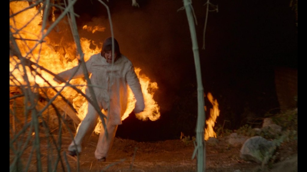 Point is, they all have the cannibal virus, and the cannibals end up in the sewers (apparently hoping to hoof it to the airport and hop on a flight back to Vietnam), where they are chased by men with guns and flamethrowers; it’s really just like Nam, but now they have become the enemy.