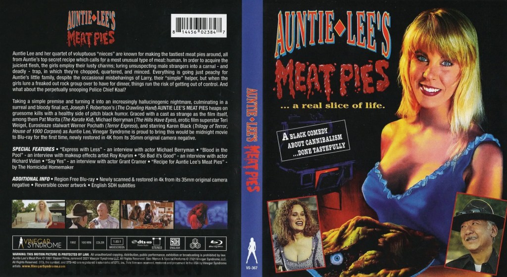 The particular genre of this little known 1992 film is “innocent cannibalism” – humans slaughtered and made into meat dishes for sale to unwitting customers; those customers thereby becoming the cannibals. It’s eternally fascinating, because everyone at one time has pulled something a bit lumpy or fibrous from their pie, hot dog or burger and wondered what (or who) that came from.