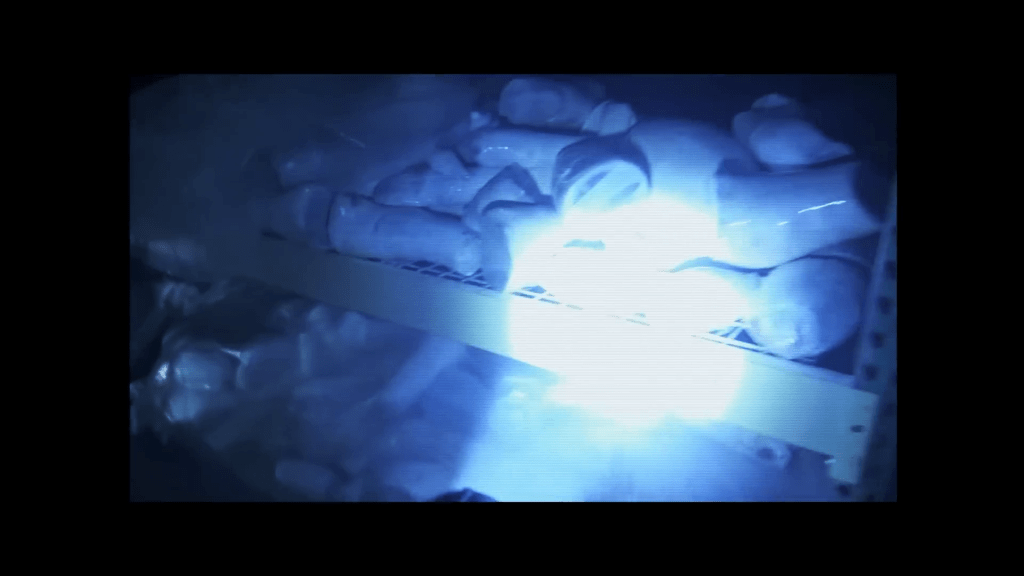 At this point, if you are a regular reader of this blog, you will have come to suspect the origin of this mysterious substance. Yep, like Soylent Green, the answer to starvation caused by overpopulation is simple – process and eat the dead humans. “HDP” stands for “Human Derived Protein”, and the plant is full of snap-frozen human body parts, presumably some of the millions of people who died during the joining. She picks up a frozen human head which (fun fact) is Vince Gilligan’s.