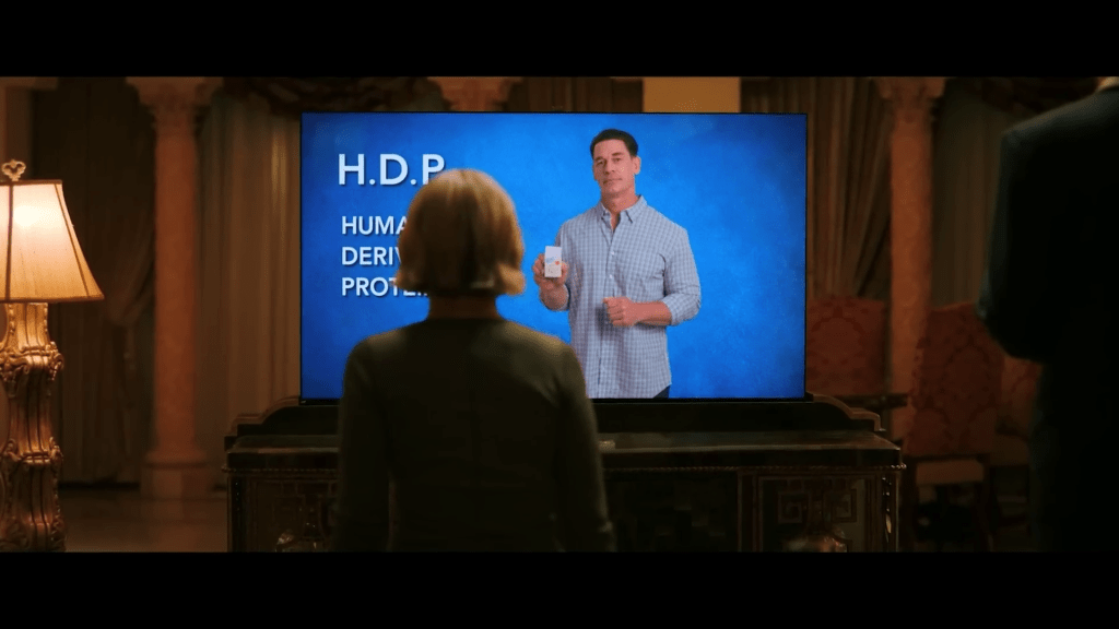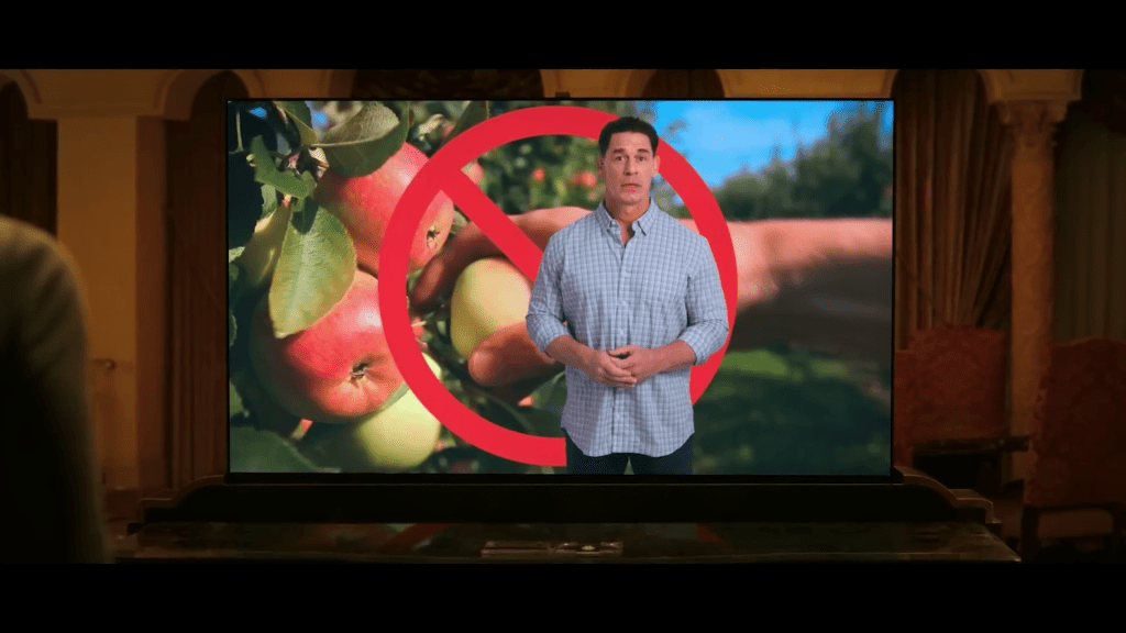 Like the plane crash survivors in Alive, there is nothing else for them to eat. A member of the others, played by John Cena (actor, wrestler, rapper and Peacemaker), explains that consuming people is not the Joining’s preference, but is instead a last resort to avoid mass starvation as their strict non-violence has extended to all other life, animal and plant; they have freed the animals from farms and zoos, and will not even pick an apple unless it falls from a tree by itself.