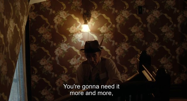 She goes looking for the showrunner of the play, a nice piece of postmodern complication as he clearly represents the creator of the show we are watching, Aaron Mark.