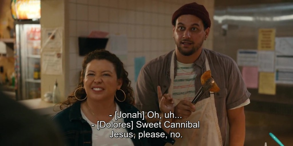 - In episodes 2 and 3, Dolores kills the landlord who has been harassing Luis for his overdue rent, which he can’t afford because the neighbourhood is now fancy, and people don’t buy empanadas much. Luis creates a new empanada, MUY LOCO. It is hugely successful, because it contains, yep, human flesh, in this case, the landlord, Mr Pearlman, whose son, Jonah, appears in the shop at the end of episode 3, with two cops behind him.