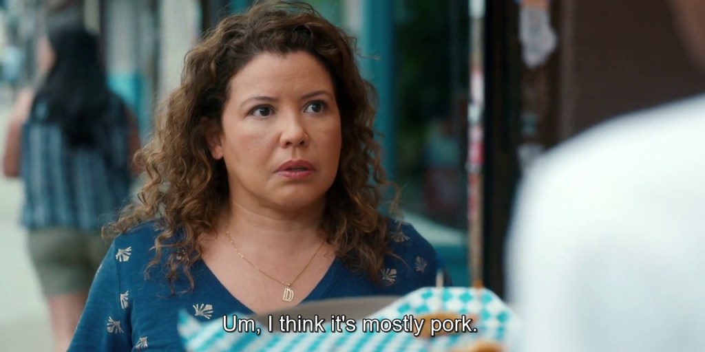 Not a lot of human flesh being eaten in these final two episodes, because everything is turning to shit, largely due to the impulsive plans of Luis, and the tendency of Dolores to snap the neck of anyone who annoys her. Police are looking for the drug dealer Dolores killed back in episode 4, and threatening to call in the DEA. Luis is still chopping up the bodies of Dolores’ victims to fill his empanadas, but he doesn’t want anyone to find the marijuana he is growing. THAT would be incriminating. Dolores points out that his fridge and apartment are full of chopped up bodies, and asks him the question that defines all ethical discussions.