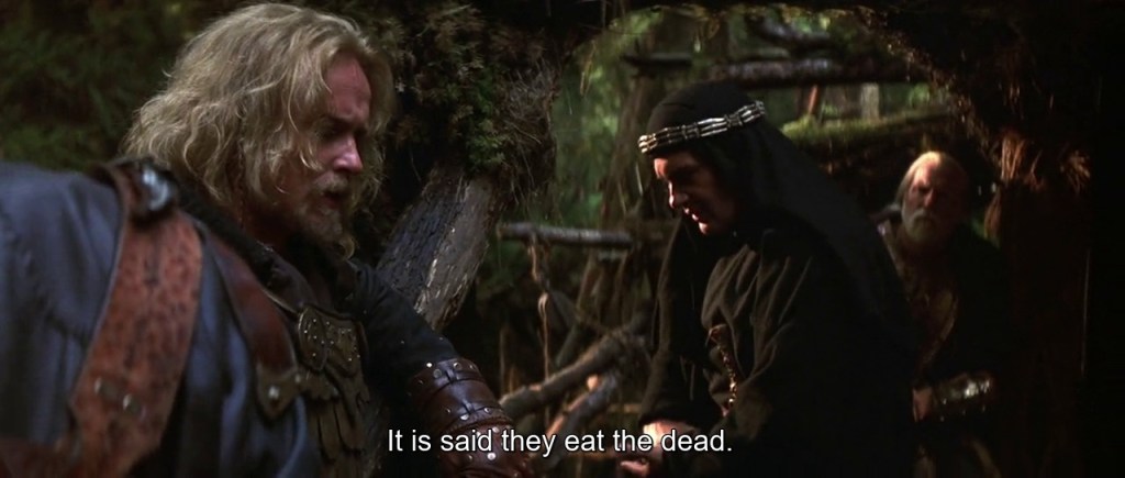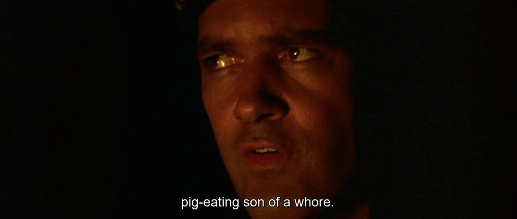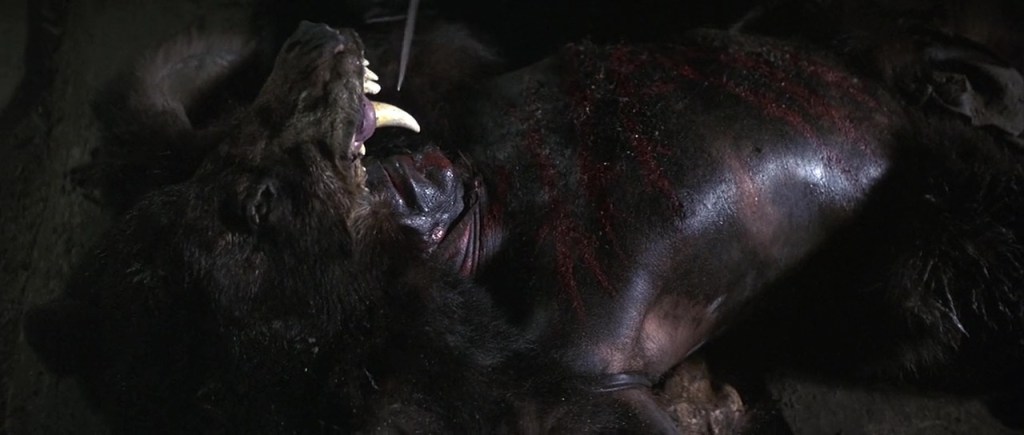 My preferred title was the Italian version: Femmine Carnivore: Carnivorous Females. Eating meat is usually considered a male pursuit (strange, in that men don’t menstruate), yet there is a terror of the female, and particularly the fact that we emerge from the womb, and subconsciously fear that we could be reabsorbed into it. Professor Barbara Creed writes about the archaic mother as a “primordial abyss”, the place we all came from, and to which we fear we will return. Unlike Freud’s insistence that boys are terrified of what they see as their potential castration when they perceive their mother’s genitals as “a lack”, the female cannibal with her knife or teeth or her vagina dentata (toothed vagina) demonstrates the real fear felt by men – their cannibalisation by the strong woman. Often she is presented as a monster or possessed by an evil entity, such as in Inseminoid or Jennifer’s Body, or turned into a zombie by some contagious virus such as in Doghouse. But it’s nice to see a movie like Die Wiebchen, where the female cannibals are just – enjoying their dinners.