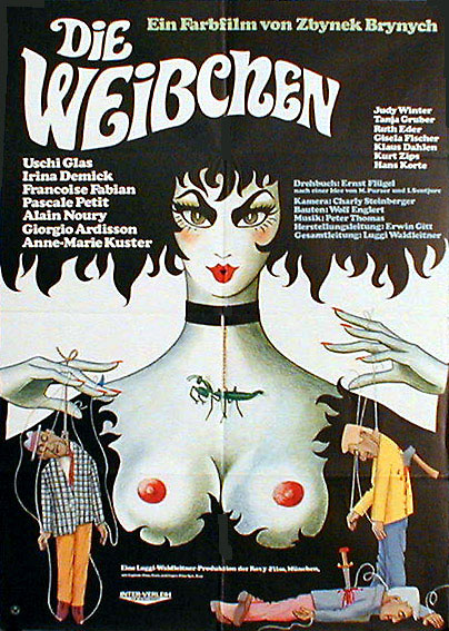 This German-language German-French-Italian made film Die Wiebchen, translated variously as “The Females” or “The Bitches” or “Feminine Carnivores” came out a couple of years later, and was certainly influenced by Solanas and her manifesto, and her gun.