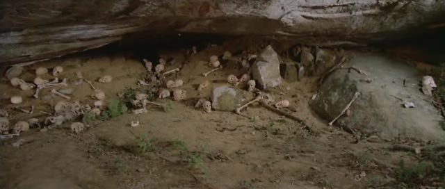 Like all the Italian horror movies of the seventies, this one has the obligatory scene of real animals being cut up and eaten, some of them while still alive. It was intended to add “realism” to what were pretty dumb plots, but just managed to put a lot of people off watching the films. There is an inordinately long scene of a python eating a monkey alive, and then humans eating a lizard, which Foster tells us is “part of their religion”. Just like eating meat is part of the religion called ‘Humanism’. I guess these scenes also try to teach us that the law of the jungle applies just as much to humans as to other animals. Or else it teaches us to appreciate the fast-forward button.