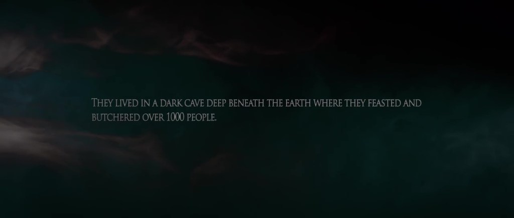 No thriller would be complete without the bad guy spilling the beans to the hero, secure in the belief that he will soon be killing (and eating) the listener. Sawney tells the captive Hamish: